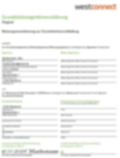 Dieses Dokument ist notwendig, um die Baumaßnahme auf Ihrem Grundstück durchführen zu dürfen. Hiermit erklärt der Grundstückseigentümer seine Zustimmung zur Verlegung der Glasfaserleitung durch sein Grundstück bis zum Haus. Wenn Sie nicht der Grundstückseigentümer sind, leiten Sie dieses Dokument bitte an den Eigentümer weiter.